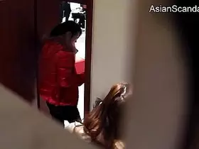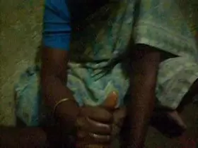 The Indo lesbian maid serves her master in his bedroom and gives him a handjob with herbs until he cums.