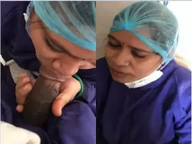 Hot Indian nurse giving blow job to doctor's dick