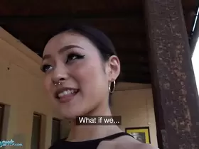 Public agent Japanese hottie Rei Lil Black guy fucks for cash