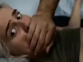 Stepmother ignores stepfather’s face while she plays with herself.