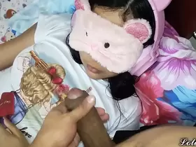 Young stepdaughter with. on her lap and then gives him a blowjob